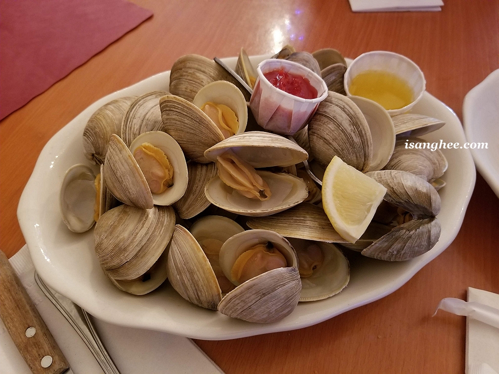이곳의 시그니처 메뉴라고 할 수 있는 2 Dozen Clam과 Lobster 그리고 갑각류를 즐기지 않는 일행들은 T-Bone steak와 Porter House를 주문했습니다. 조개 별로 안 좋아하는데 이집 조개는 많이 먹게 되는군요. 여전히 쫄깃쫄깃 맛있었습니다. 예전 10년 전 다시는 먹지 않겠다던 뉴욕스트립 스테이크는 메뉴에서 사라졌습니다. 대신 주문한 티본 스테이크와 포터 하우스, 이 두 고기 덩어리들은 그때보다 훨씬 맛있더라구요.